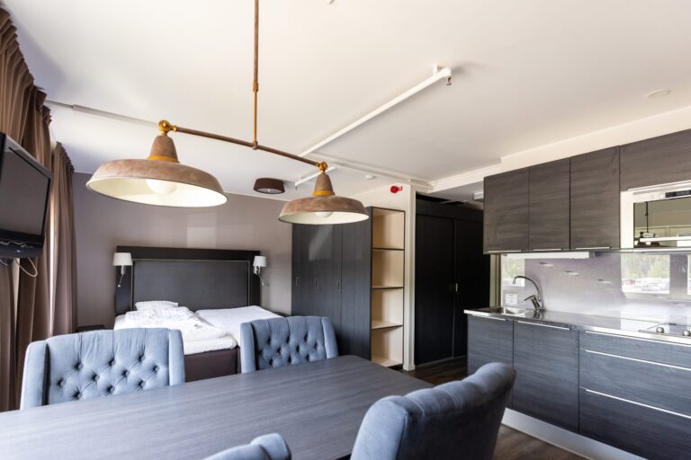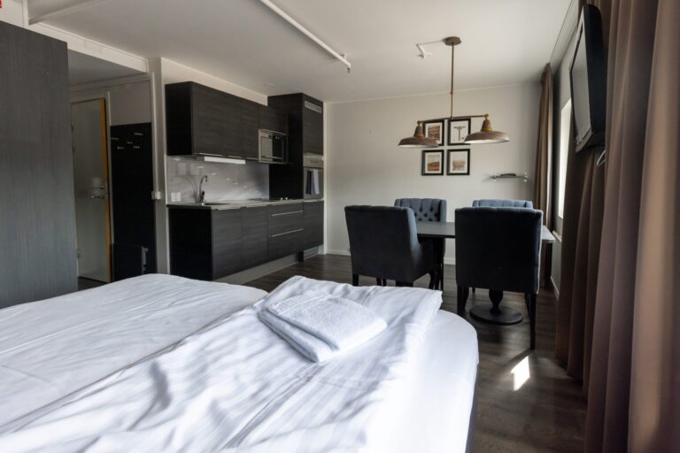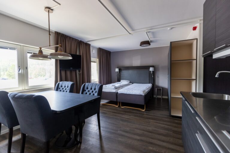 Bo i våra hemtrevliga parstugor precis utanför hotellets entré. Varje stuga har två våningar med kök, allrum och 4-5 sängplatser – perfekt för familjer eller grupper som söker bekvämt och rymligt självhushållsboende. Flera stugor har även egen bastu för extra avkoppling.